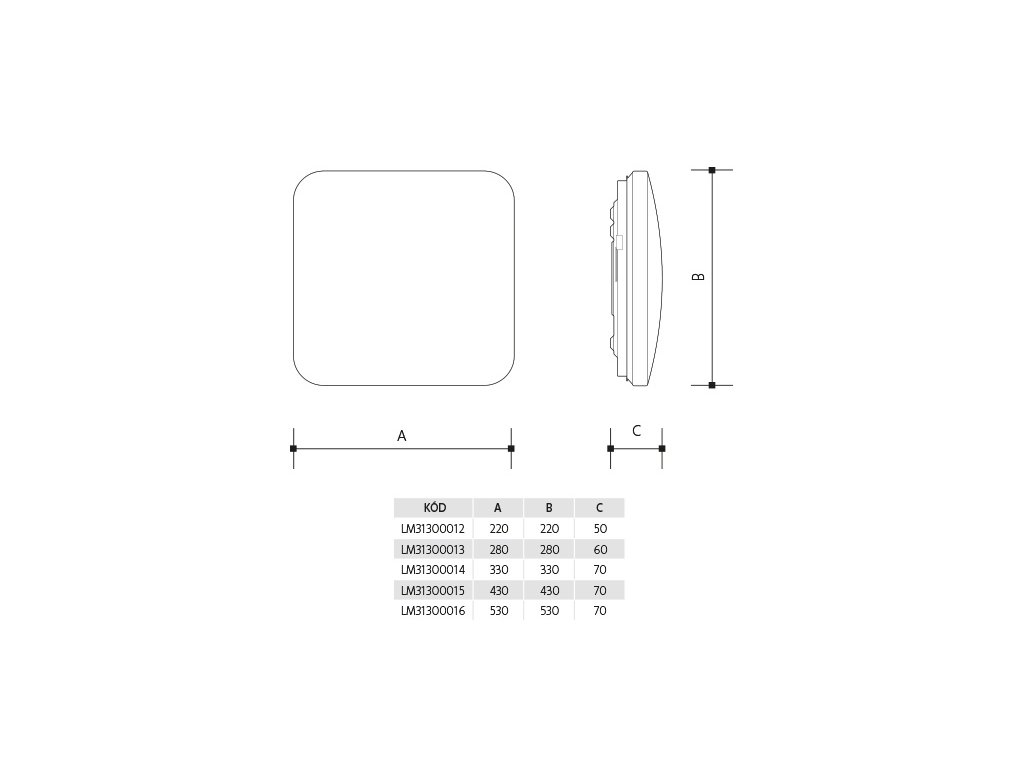 Hranaté provedení: PLAFON SQUARE